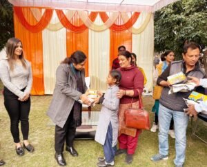 टीम थाल सेवा के सहयोग से झुग्गी-झोपड़ी बस्तियों में रहने वाले तथा वीरांगना सोसाइटी में प्रारंभिक शिक्षा ग्रहण कर रहे लगभग 125 गरीब व जरूरतमंद स्कूली बच्चों को स्वेटर, जूते एवं मौजे वितरित किए गए।